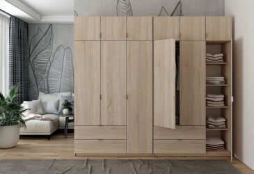 - akce, skladem, dřevotříska, možnost osvětlení, laminovaná, dub sonoma, kuličková vedení plného výsuvu, dřevotříska, police, tyč, zásuvky, moderní styl.