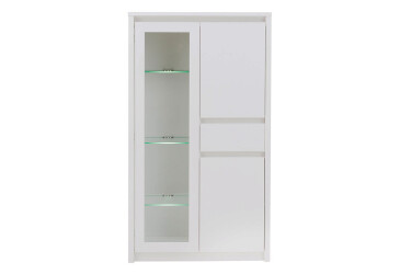 - akce, stojací, MDF, vitríny, možnost osvětlení polic, lesklá, bílý lesk, dřevotříska, hi-tech styl.