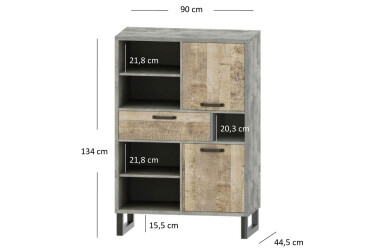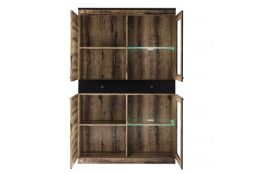 - akce, stojací, dřevotříska + MDF, vitríny, možnost osvětlení, laminovaná, borovice vintage, kuličková vedení plného výsuvu, dřevotříska, venkovský styl.