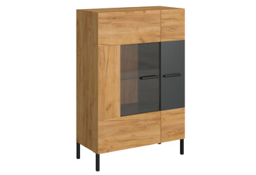 - akce, skladem, stojací, dřevotříska, vitríny, možnost osvětlení, laminovaná, dub kraft zlatý / antracit, dřevotříska, loft.
