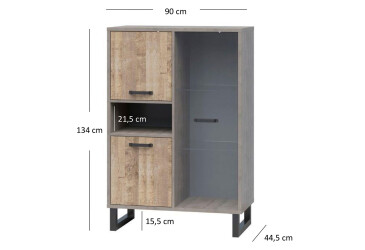 - akce, stojací, dřevotříska, vitríny, možnost osvětlení, laminovaná, šedá / dub pískový, kuličková vedení plného výsuvu, dřevotříska, loft.