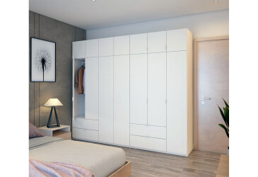 Skříň sedmidveřová s regálem Gelar 309 cm Bílá