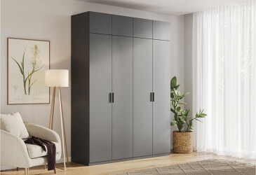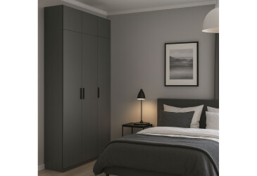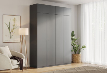 - super-cena, sklo, možnost osvětlení polic, laminovaná, antracit, dřevotříska, police, tyč, moderní styl.
