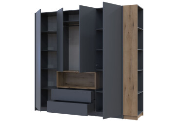 - super-cena, MDF, laminovaná, dub appalache / antracit, dřevotříska, police, tyč, moderní styl.