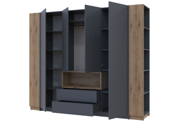 - super-cena, dřevotříska, laminovaná, grafit / dub evok / grafit, kuličková vedení plného výsuvu, dřevotříska, police, tyč, zásuvky, moderní styl.