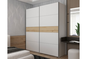 Skříň s posuvnými dveřmi G-Caiser, 2dveřová, DTD, 220 cm, bílá / vložka dub evoke