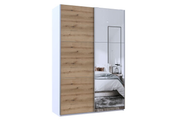 Skříň G-Caiser Doros s 2 dveřmi: DTD + zrcadlo, 160 cm, bílá / dub evok