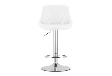 - barové, čalounění, bez područek, bílá / kov chrom, koženka, zvedací-otočný mechanismus, 120 kg, moderní styl.