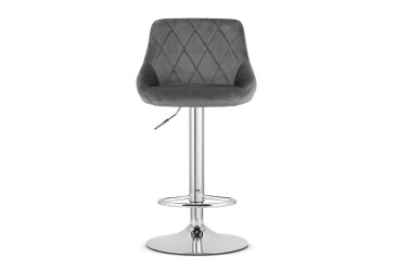 - skladem, barové, čalounění, bez područek, šedá / kov chrom, samet, zvedací-otočný mechanismus, 120 kg, moderní styl.