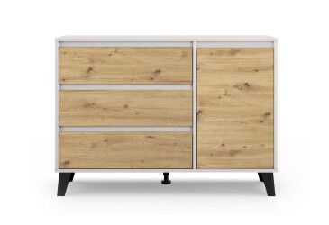 - novinka, skladem, dřevotříska, laminovaná, se zásuvkami, dub artisan / bílá, kuličková vedení plného výsuvu, 4 zásuvky, dřevotříska, moderní styl.
