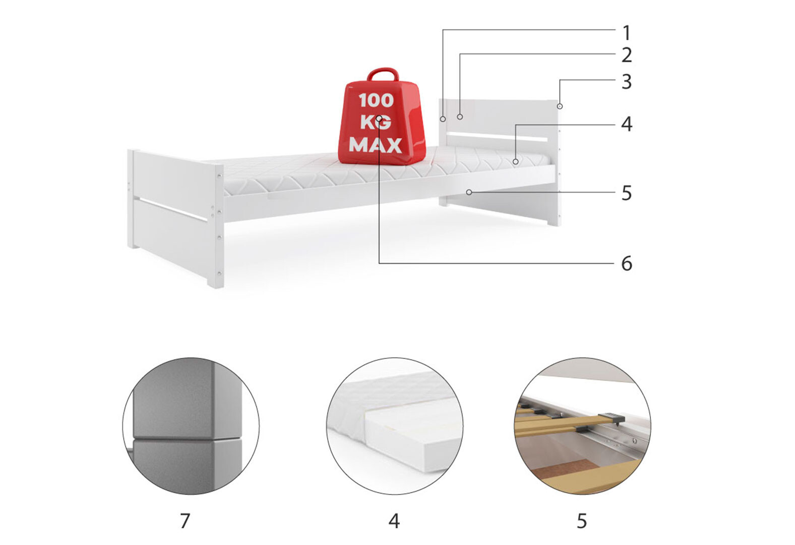 Fotografie 4 - Postel Bartek grafit 90x200 cm s roštem, matrací