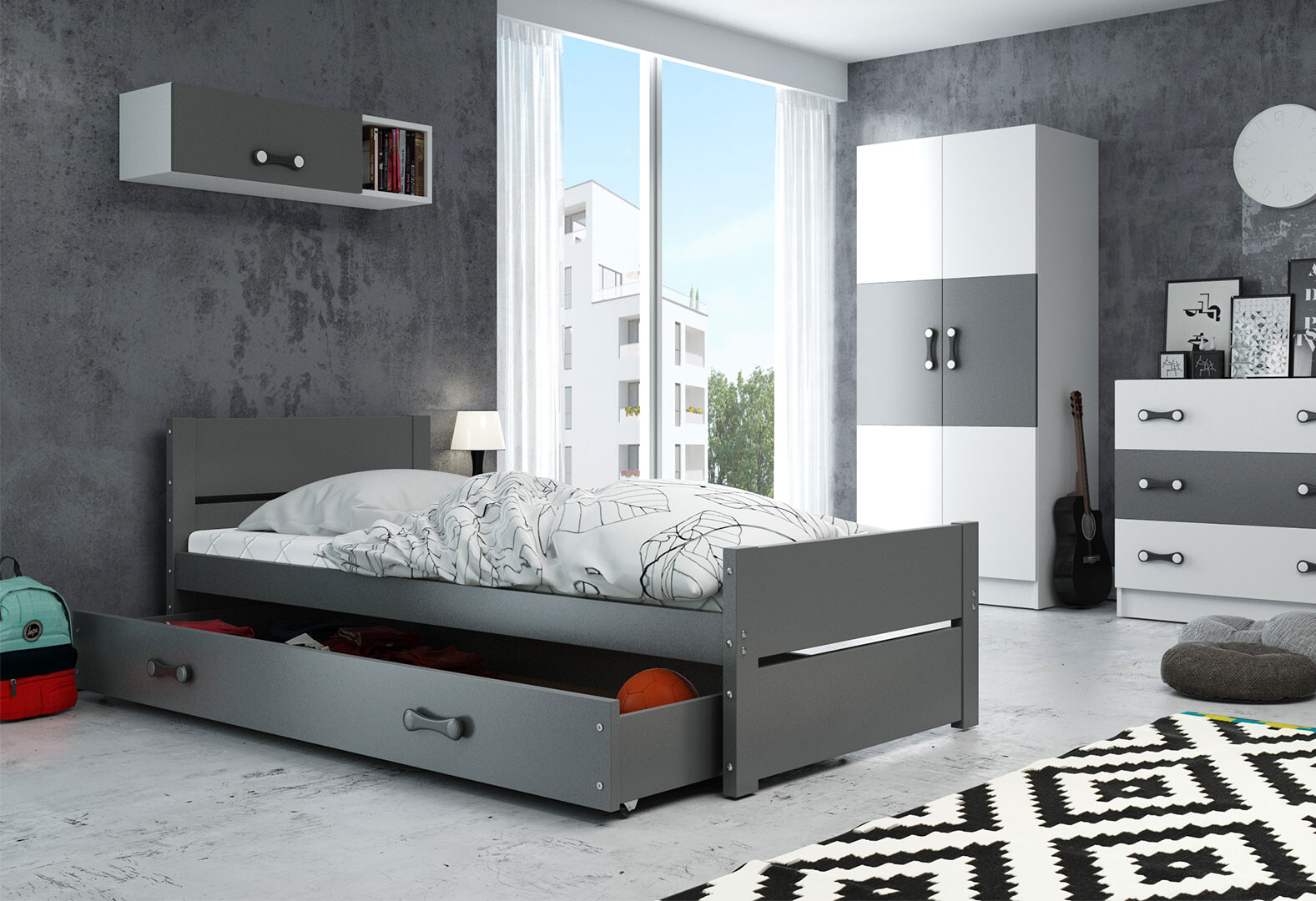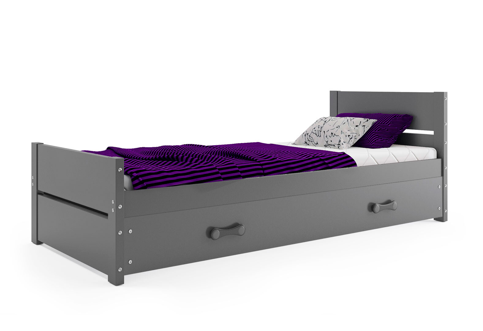 Fotografie 1 - Postel Bartek grafit + zásuvka 90x200 cm s roštem, matrací