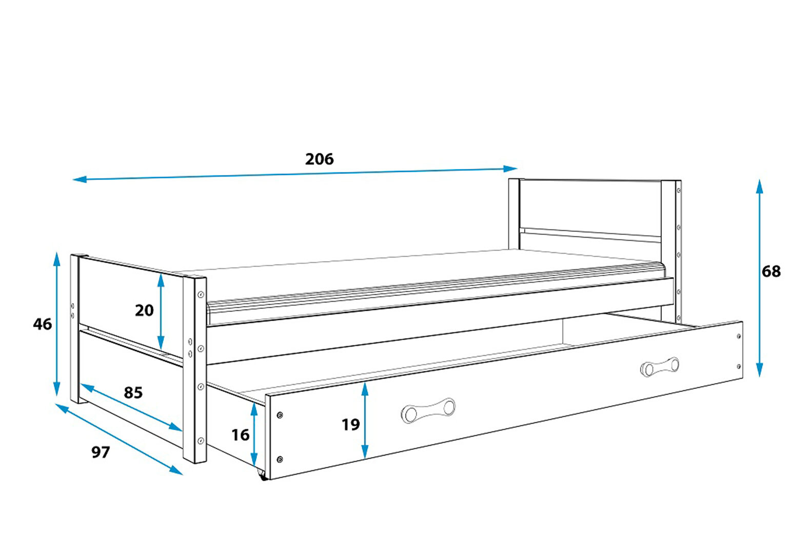 Fotografie 2 - Postel Bartek grafit + zásuvka 90x200 cm s roštem, matrací