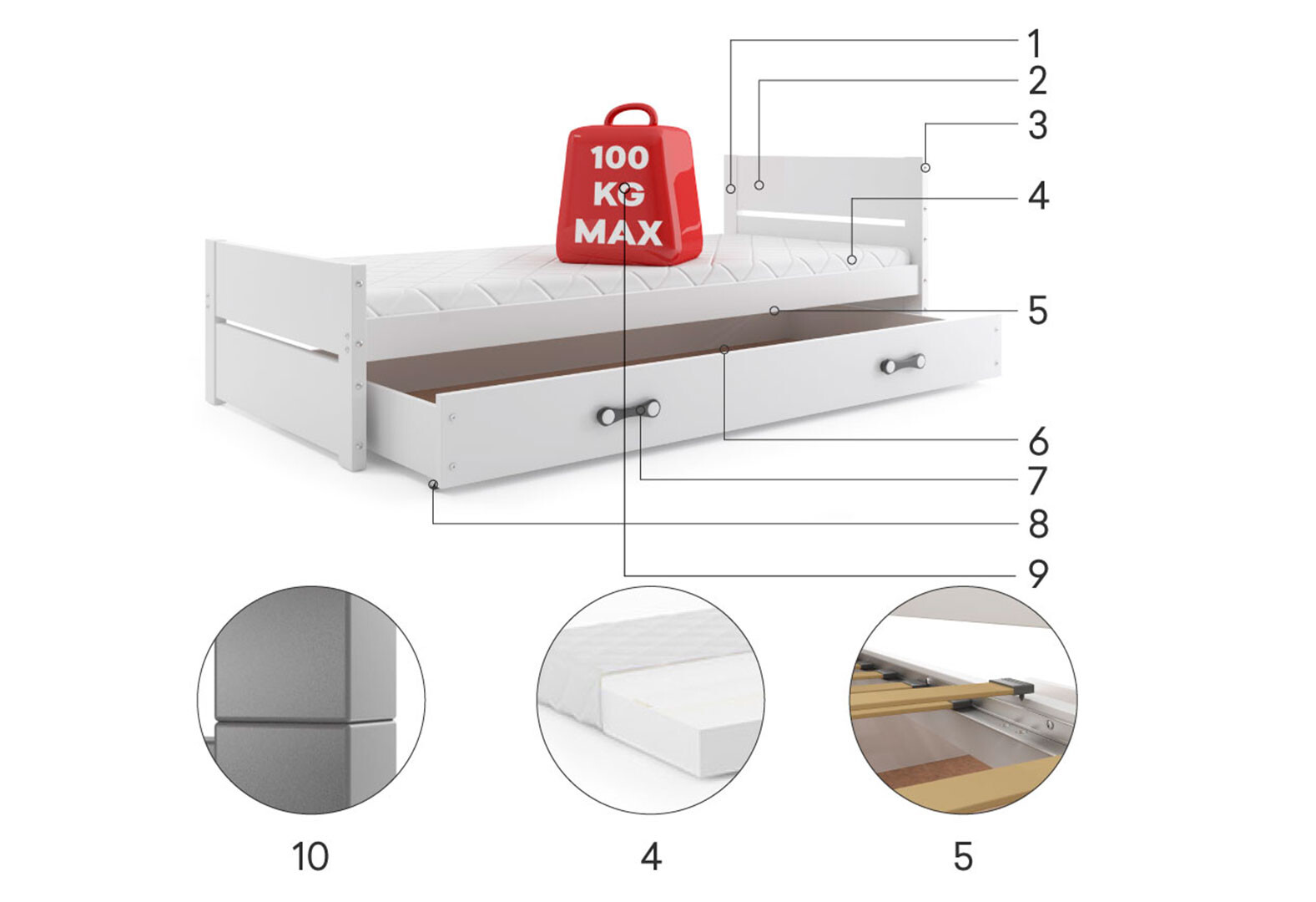 Fotografie 3 - Postel Bartek grafit + zásuvka 90x200 cm s roštem, matrací