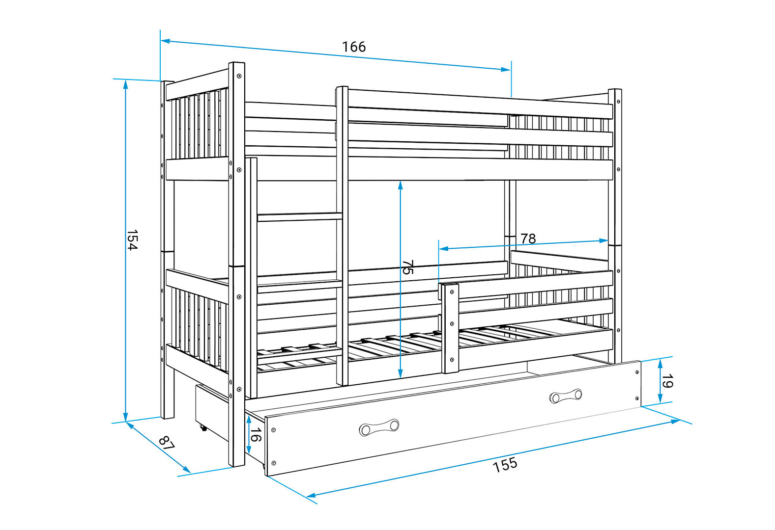 Fotografie 3 - Patrová postel Carino bílé, zásuvka modrý 80x160 cm s roštem, matrací