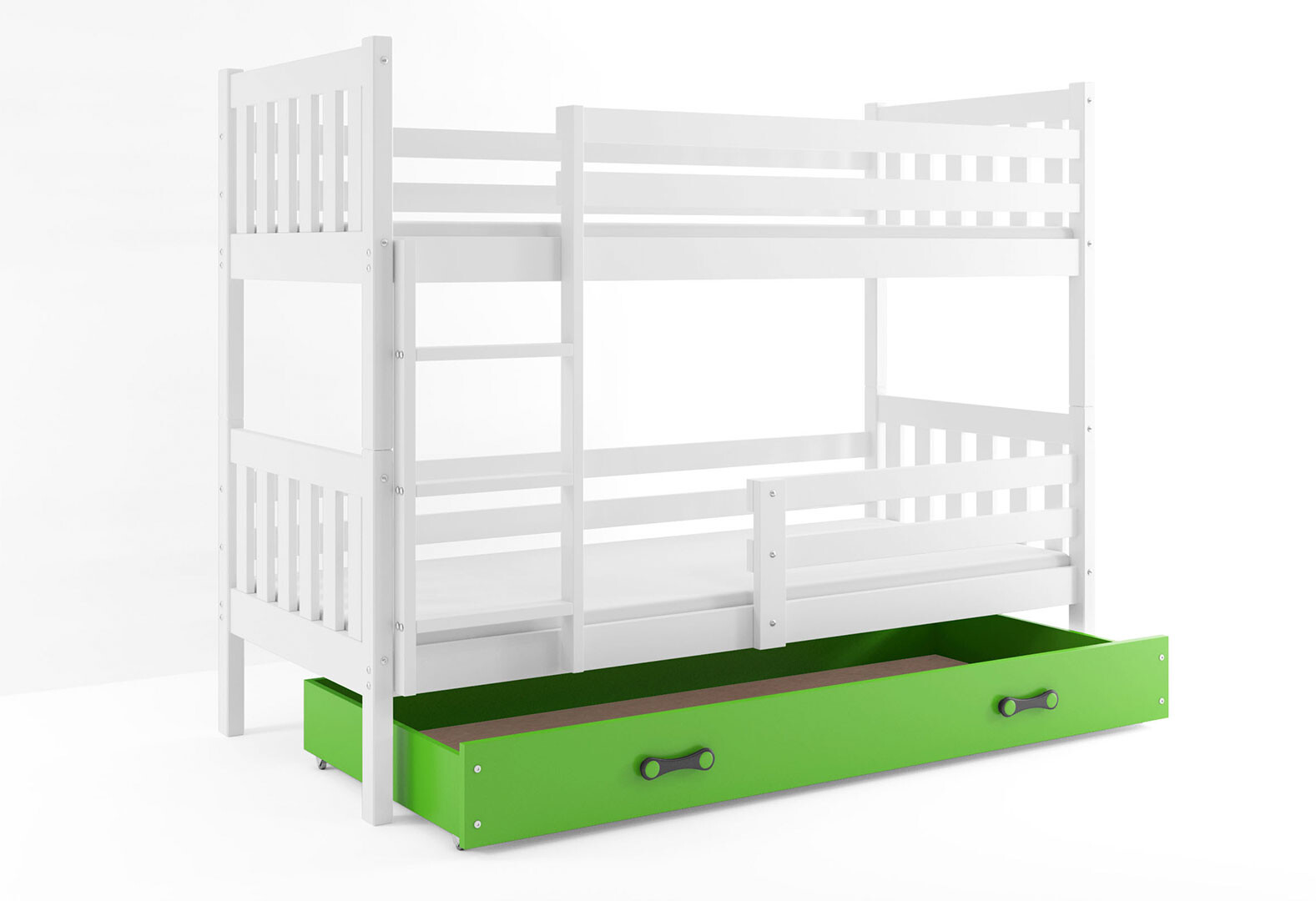 Fotografie 2 - Patrová postel Carino bílé, zásuvka zelený 80x160 cm s roštem, matrací