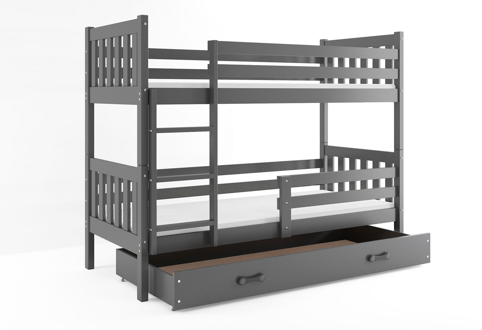 Patrová postel Carino grafit, zásuvka grafit 80x190 cm s roštem, matrací