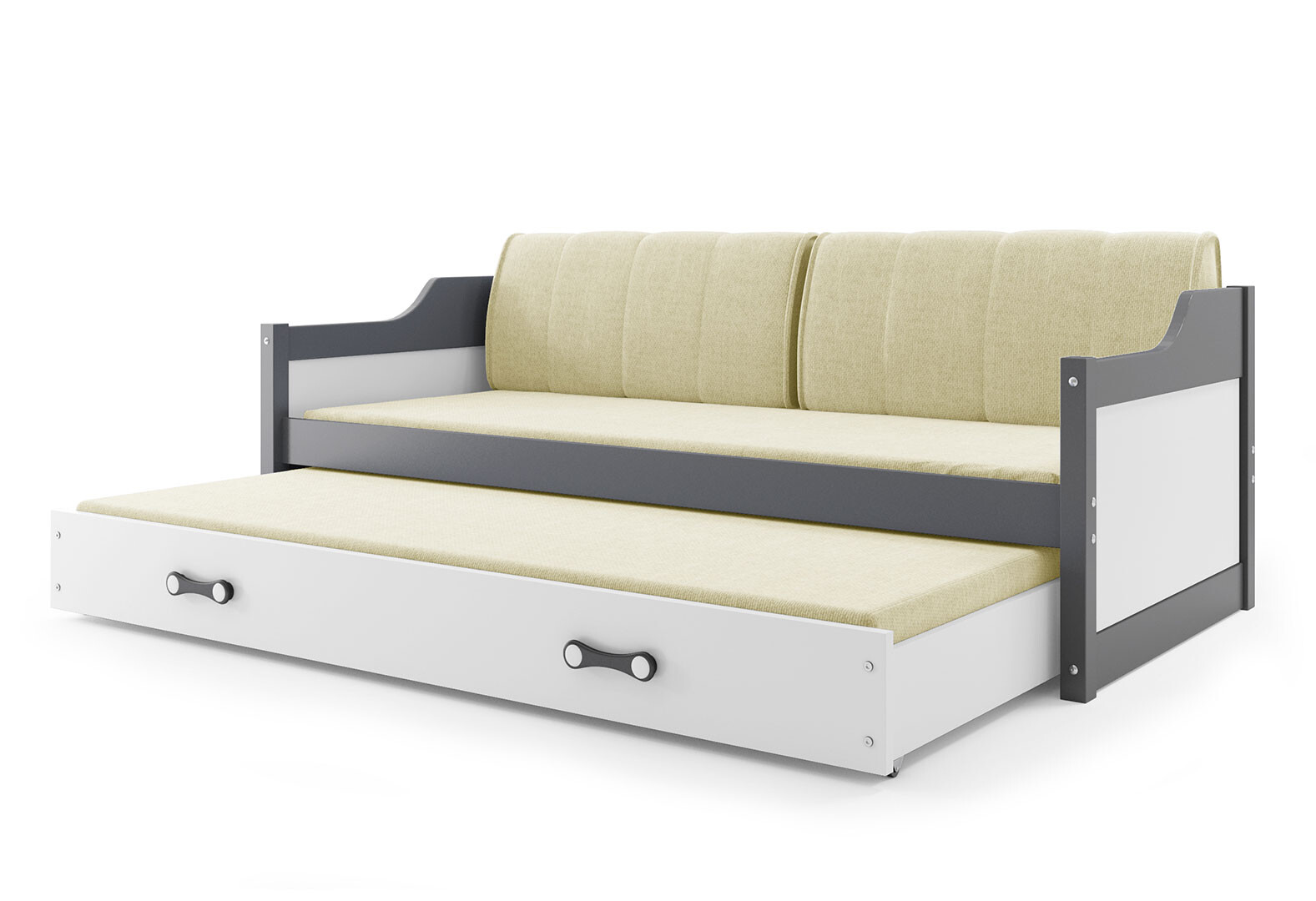 Fotografie 4 - Dvoulůžko Dawid grafit / bílý 90x200 cm s roštem, 2 matracemi