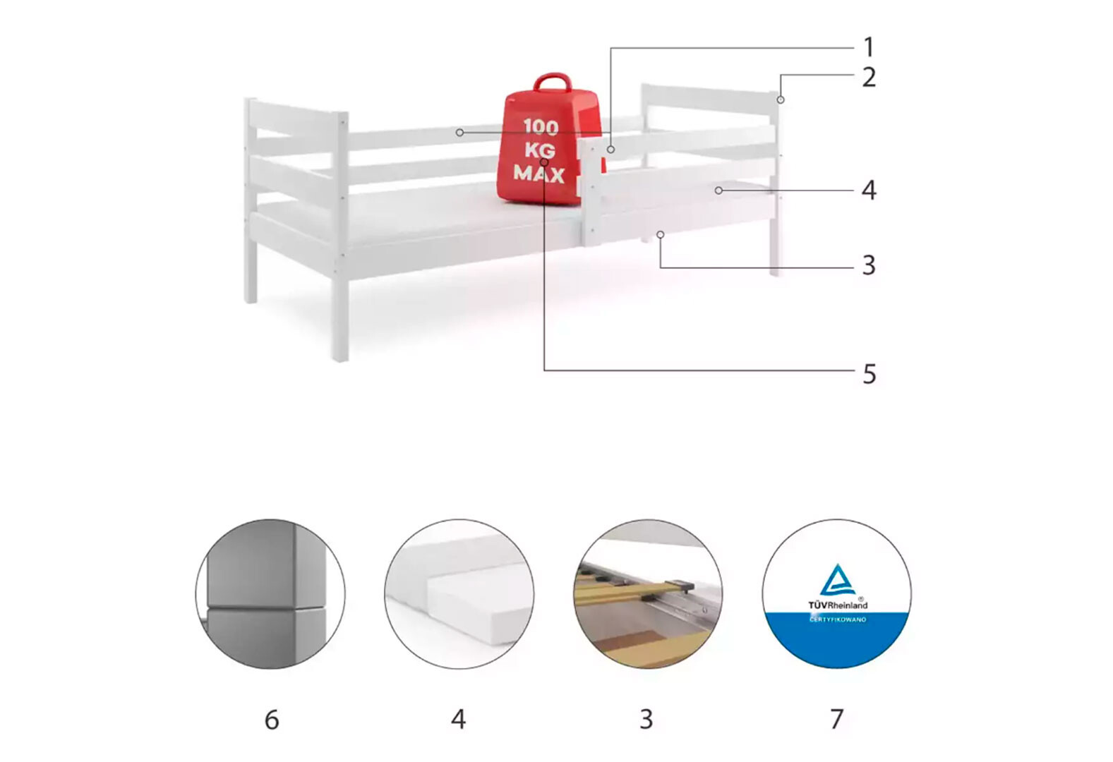 Fotografie 4 - Postel Eryk bílé 90x200 cm s roštem, matrací