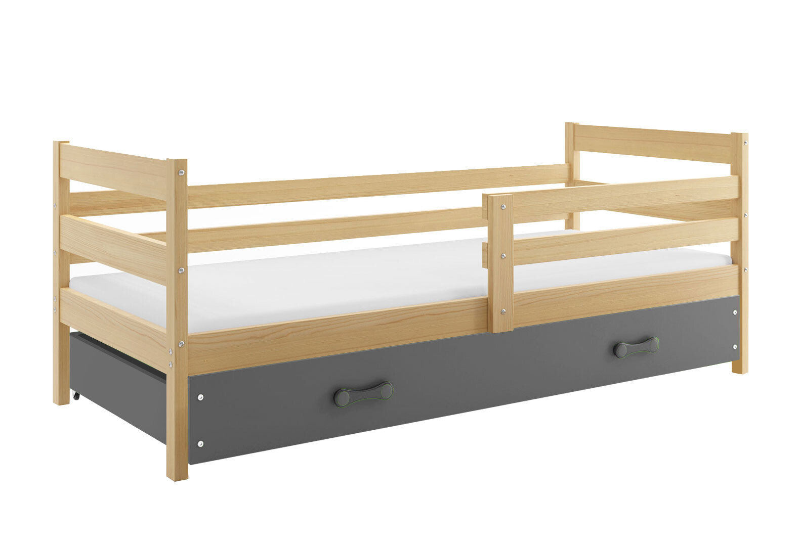 Postel Eryk borovice, zásuvka grafit 80x190 cm s roštem, matrací