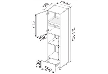 - Praktické rozměry. Výška 2140 mm je ideální pro umístění trouby a mikrovlnné trouby, čímž šetří místo a zajišťuje pohodlný přístup k těmto spotřebičům.
