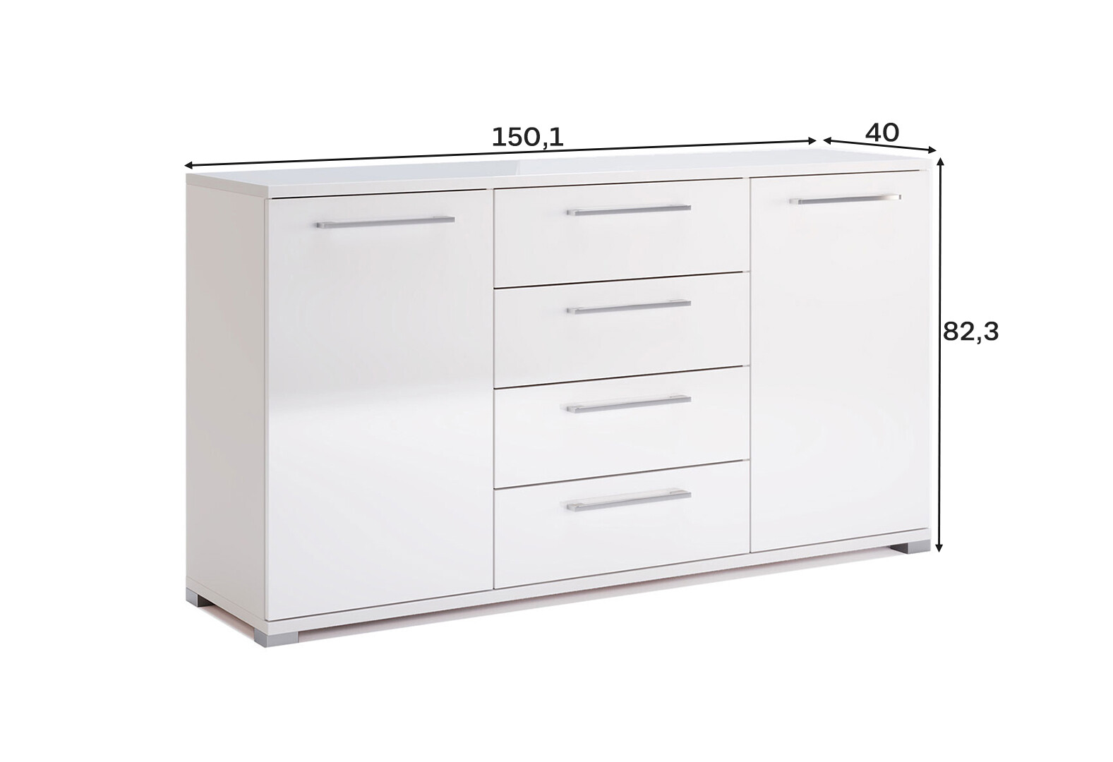 Komoda 2dv 4šu 1,5 m bílý lesk Family