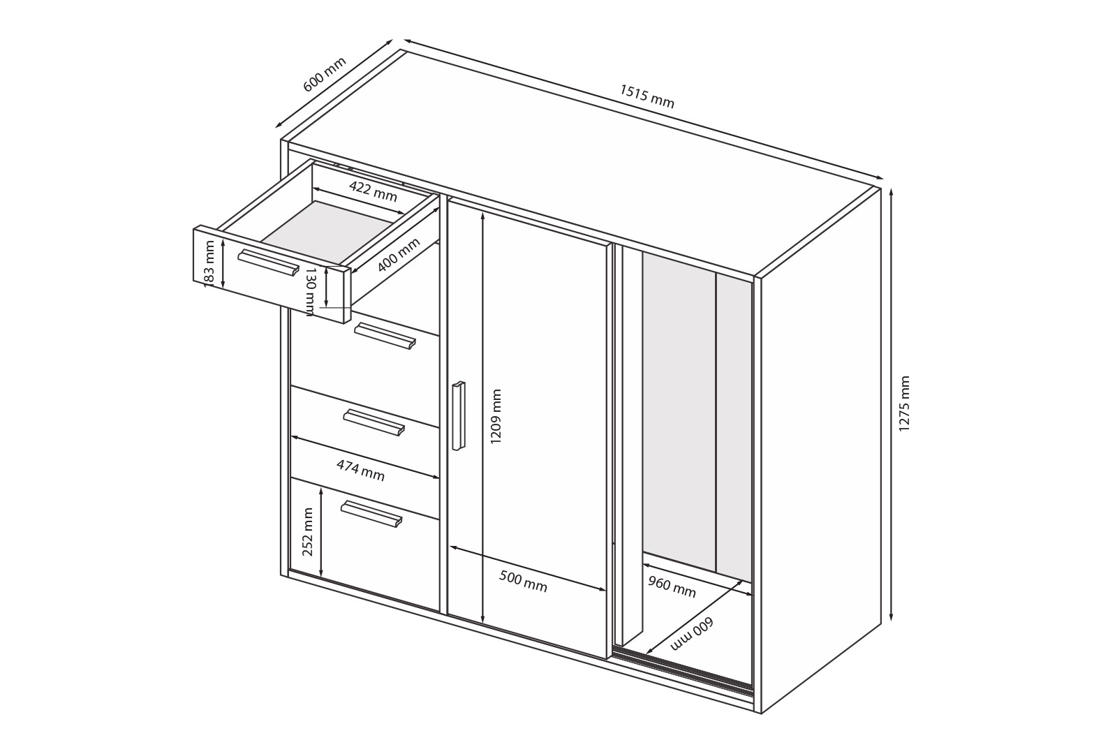Komoda 2dv 5šx (Grafit) Case