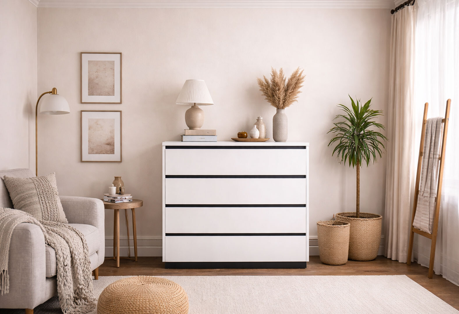 Fotografie 1 - Komoda 4šx bílý supermat, antracit Duo