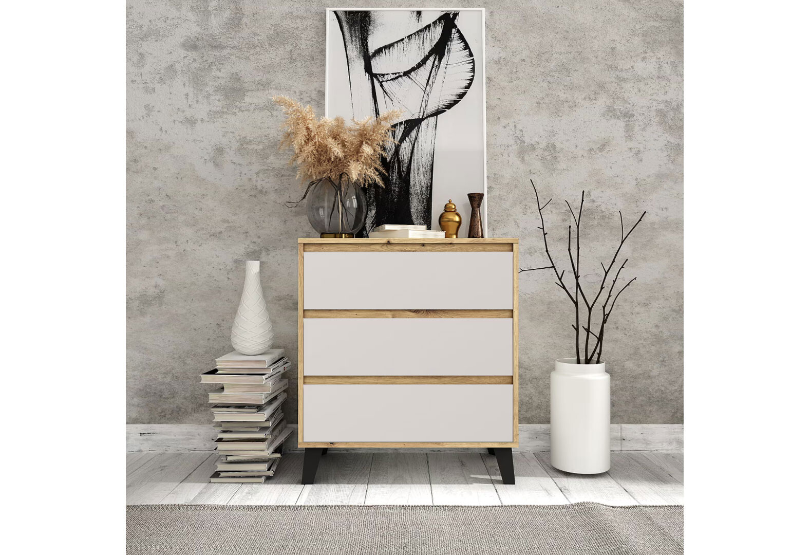 Komoda Borg 5s/40 dub artisan / bílá