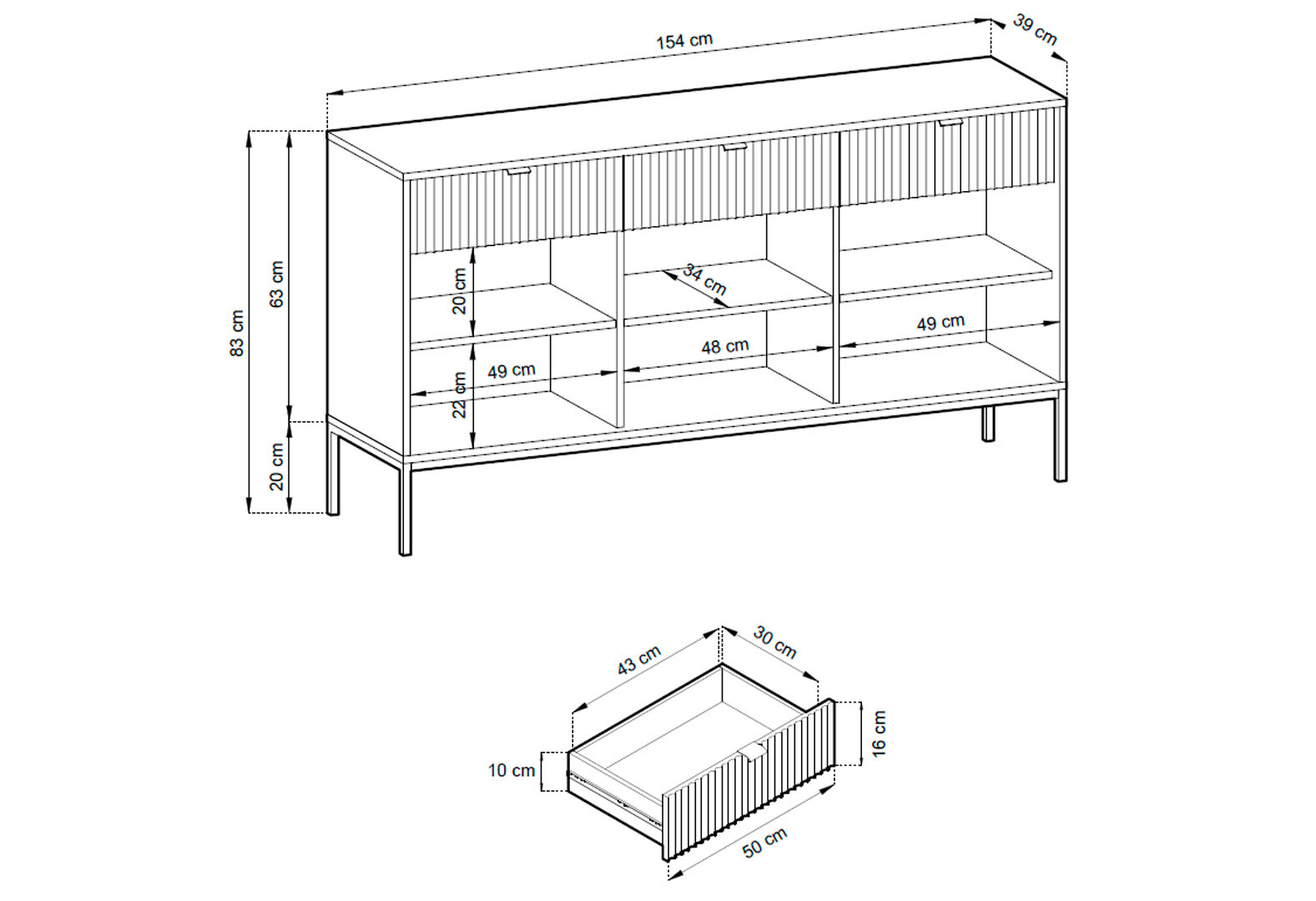 Komoda KSZ154 šedá Nova Černé nohy / zlatý úchytky