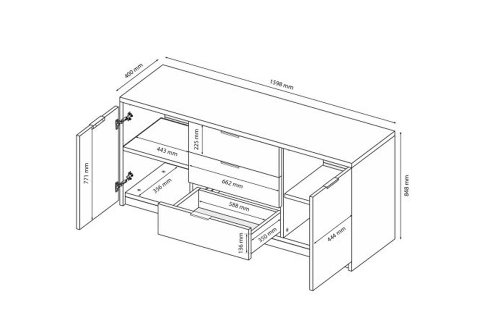 Komoda Roma Color 2 dveře 3 šířky 1,6 m kašmírový lesk