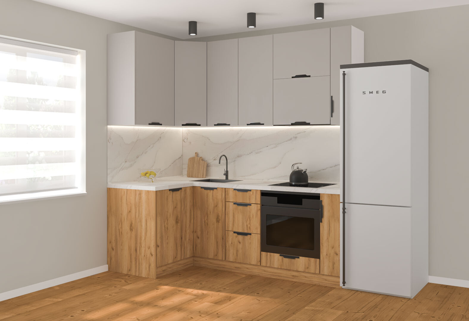 Fotografie 2 - Sada 1.22x2.2 vrch Bílý / Kašmír, spodek Dub kraft zlatý Leo