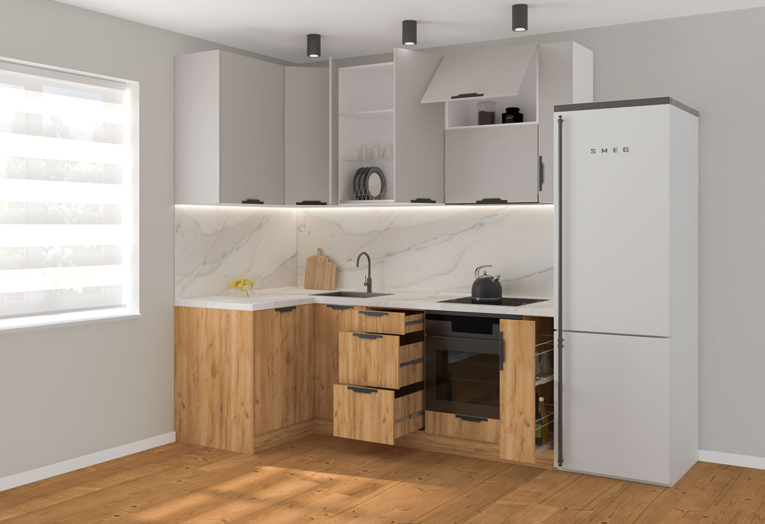 Fotografie 1 - Sada 1.22x2.2 vrch Bílý / Kašmír, spodek Dub kraft zlatý Leo