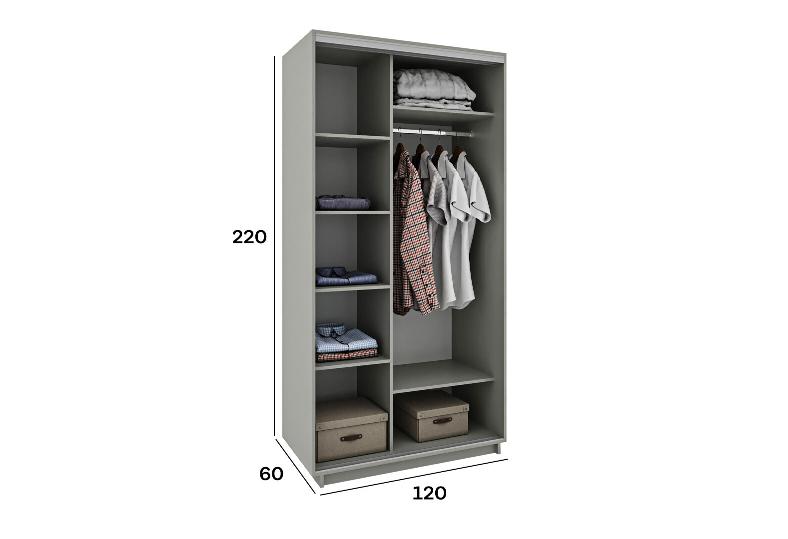 Skříň s posuvnými dveřmi 2200x1200x600 1LTD 1 Zrcadlo šedá myška, profil stříbrný