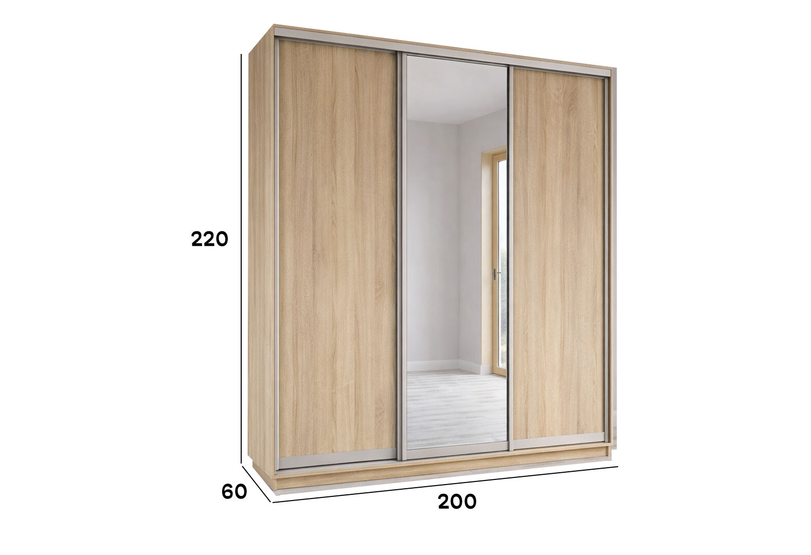 Fotografie 2 - Skříň s posuvnými dveřmi 2200x2000x600 2LTD 1 Zrcadlo Dub Sonoma, profil stříbrný