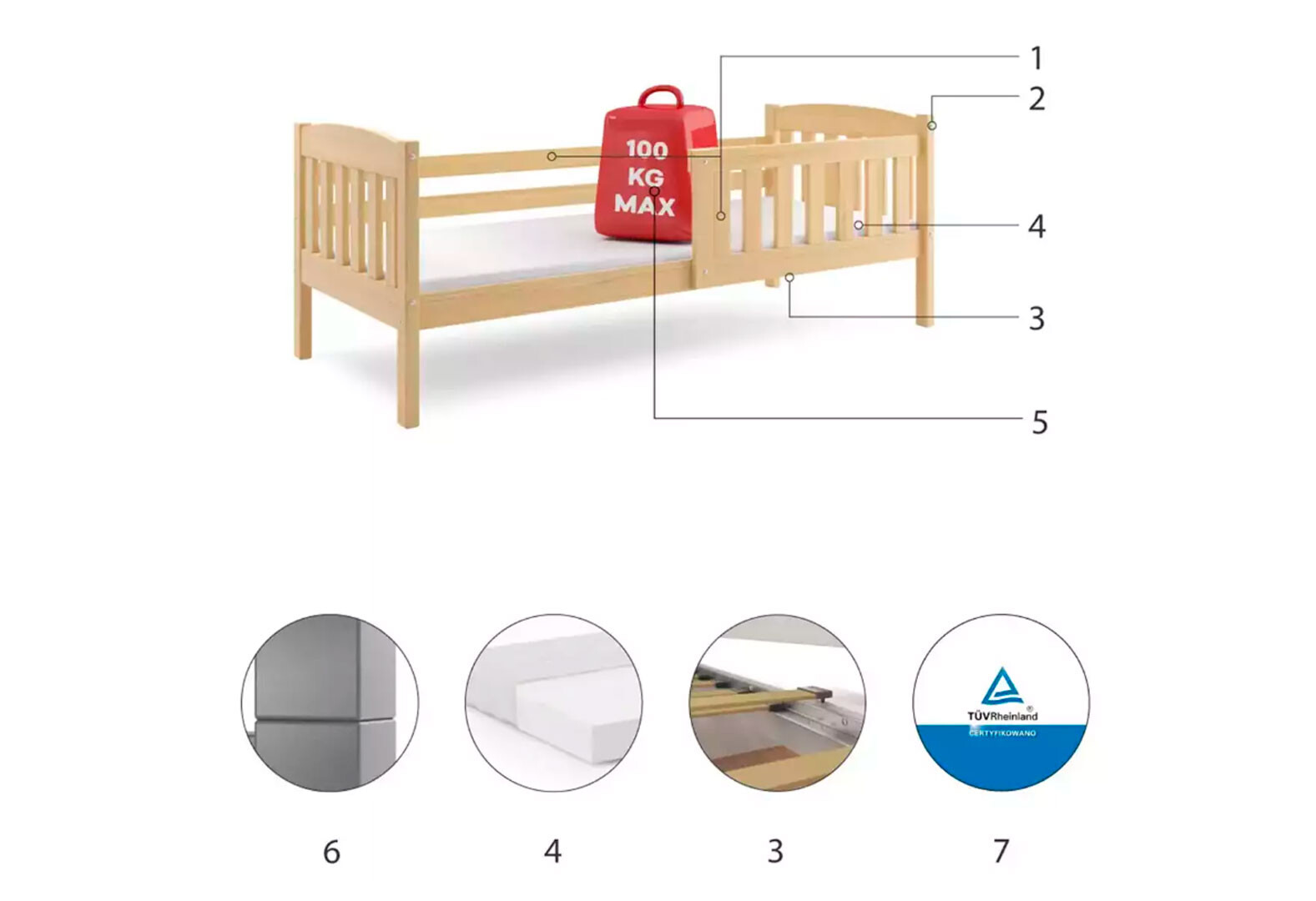Fotografie 3 - Postel Kubus borovice 80x160 cm s roštem, matrací