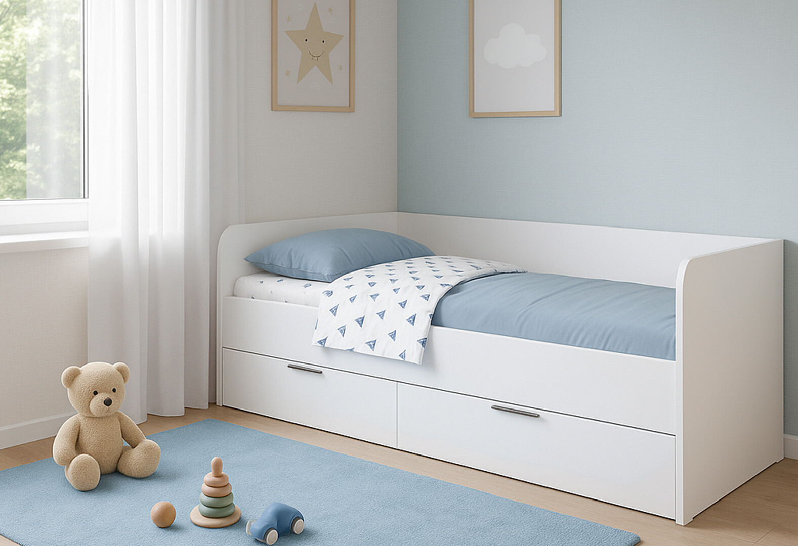 Postel 0,9x2,0 s rámem bílý lesk Happy