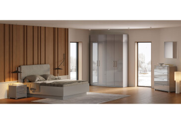 Postel 1,6 m výsuvná s rámem šedý lesk Megy je součástí modulového systému série do ložnice Megy, která zahrnuje celkem 41 produktů. V rámci této série si můžete vybrat zboží různých kategorií, které doplní vaši ložnici: