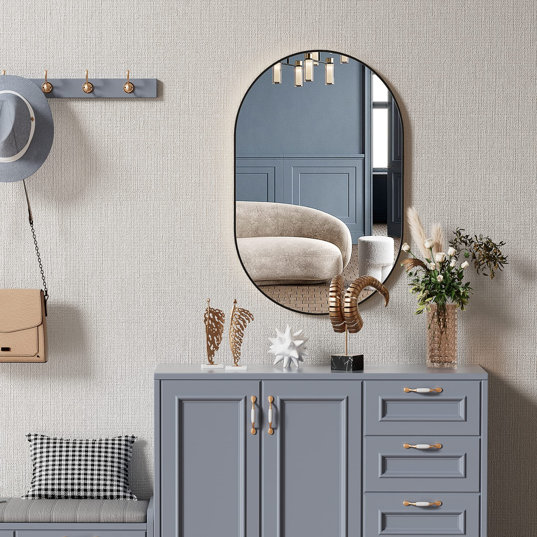 Fotografie 7 - Zrcadlo oválné 80x40cm černý rám