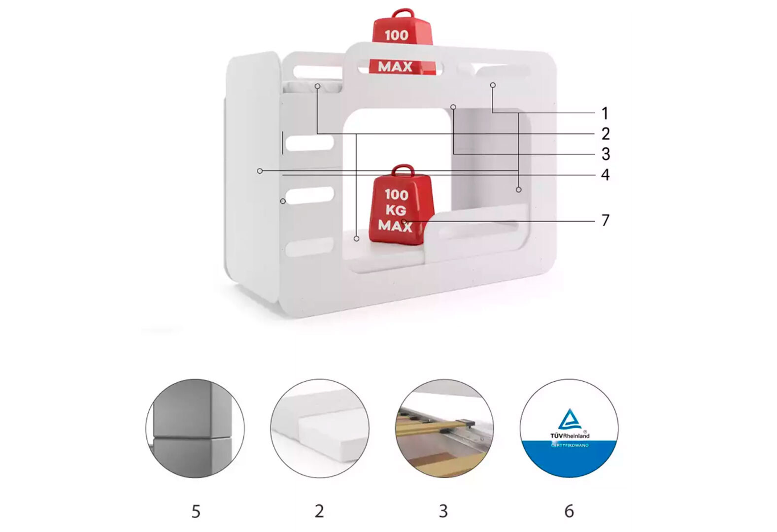 Fotografie 4 - Patrová postel Max 2 bílé 80x200 cm s roštem, matrací
