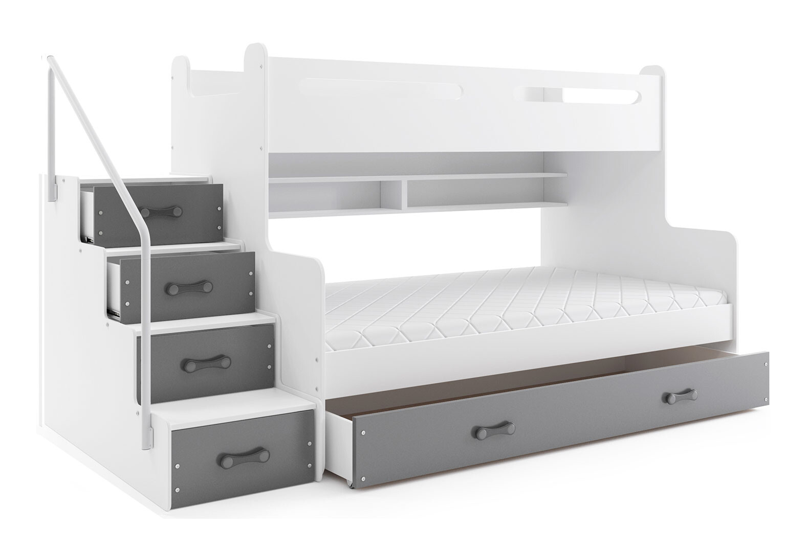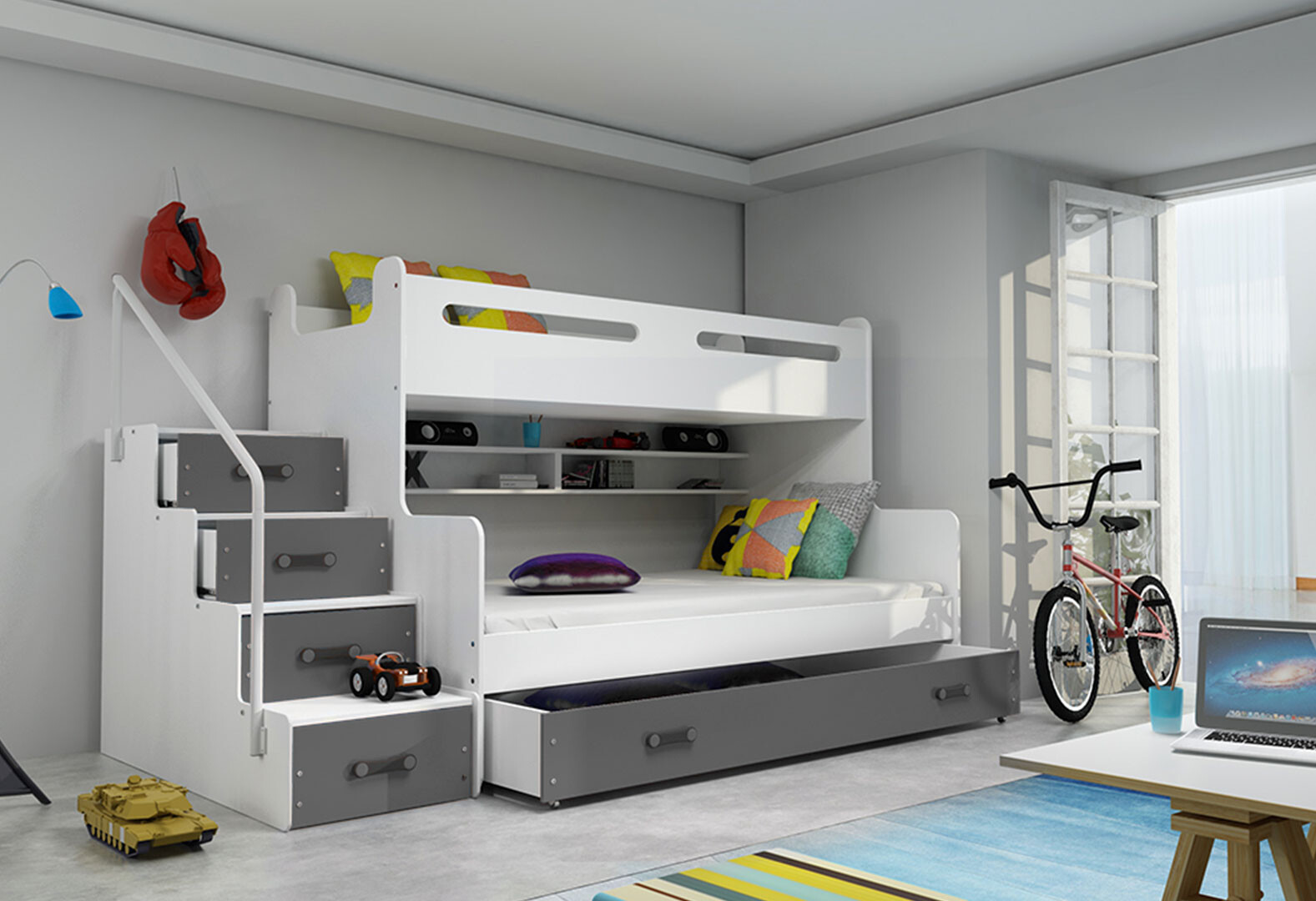Patrová postel Max 3 bílé / grafit 80x200 / 120x200 + zásuvka, s roštem, matrací
