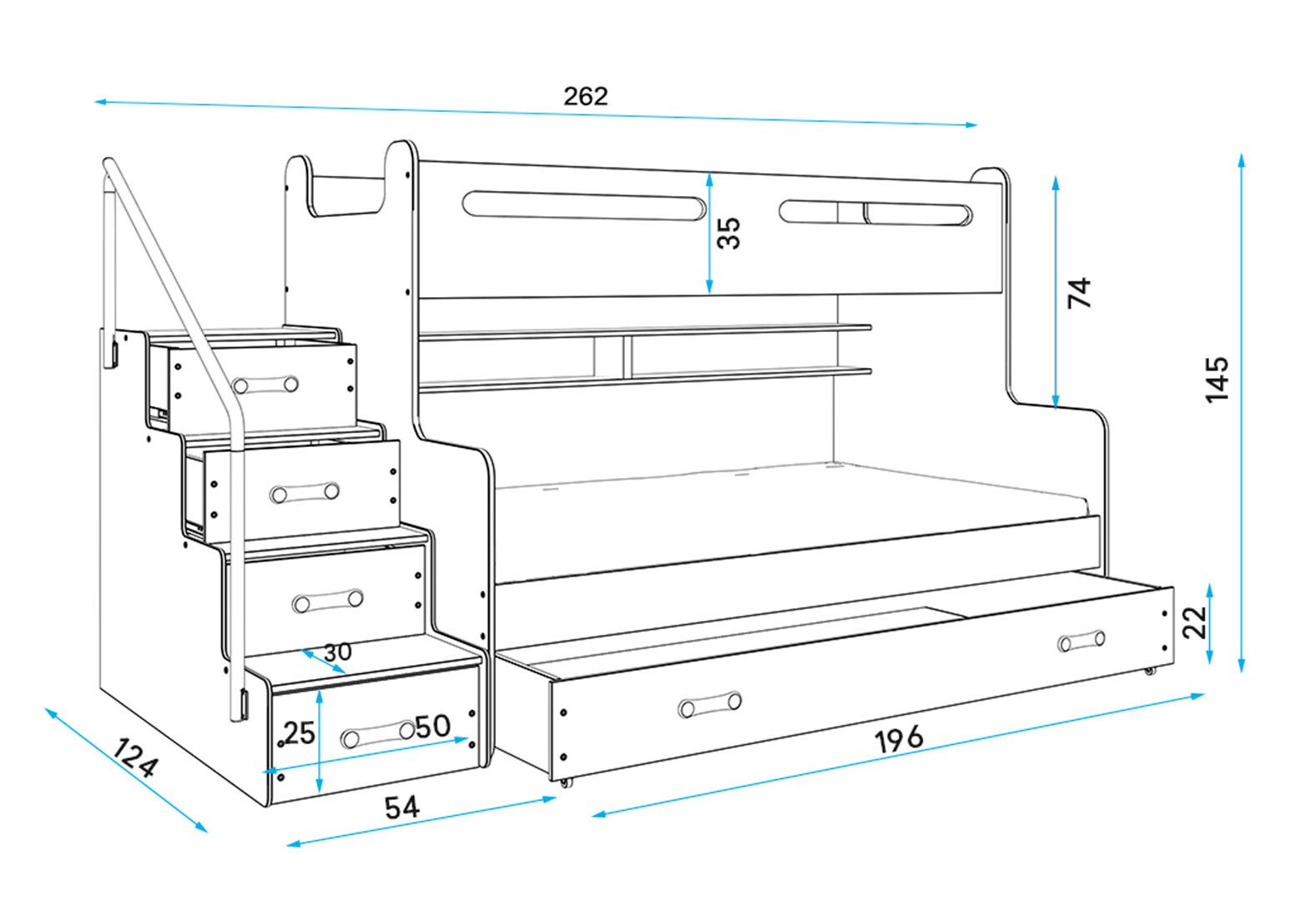 Fotografie 4 - Patrová postel Max 3 bílé / grafit 80x200 / 120x200 + zásuvka, s roštem, matrací