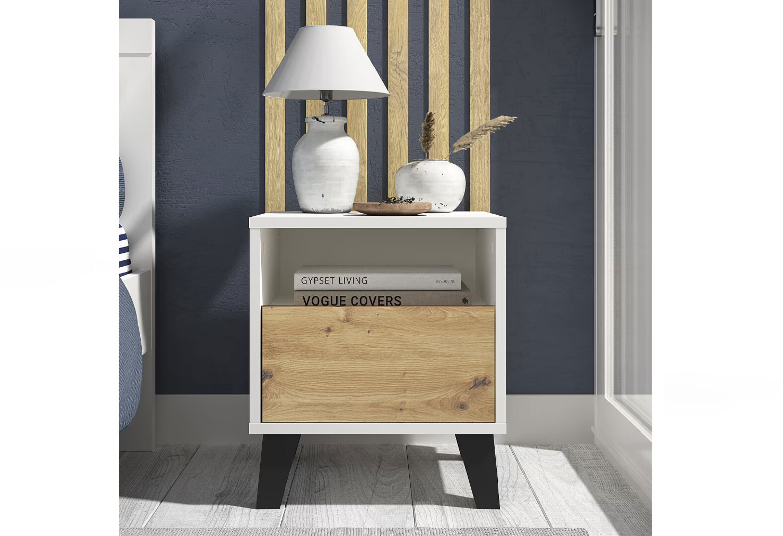 Fotografie 1 - Noční stolek Borg 1s bílý / dub artisan