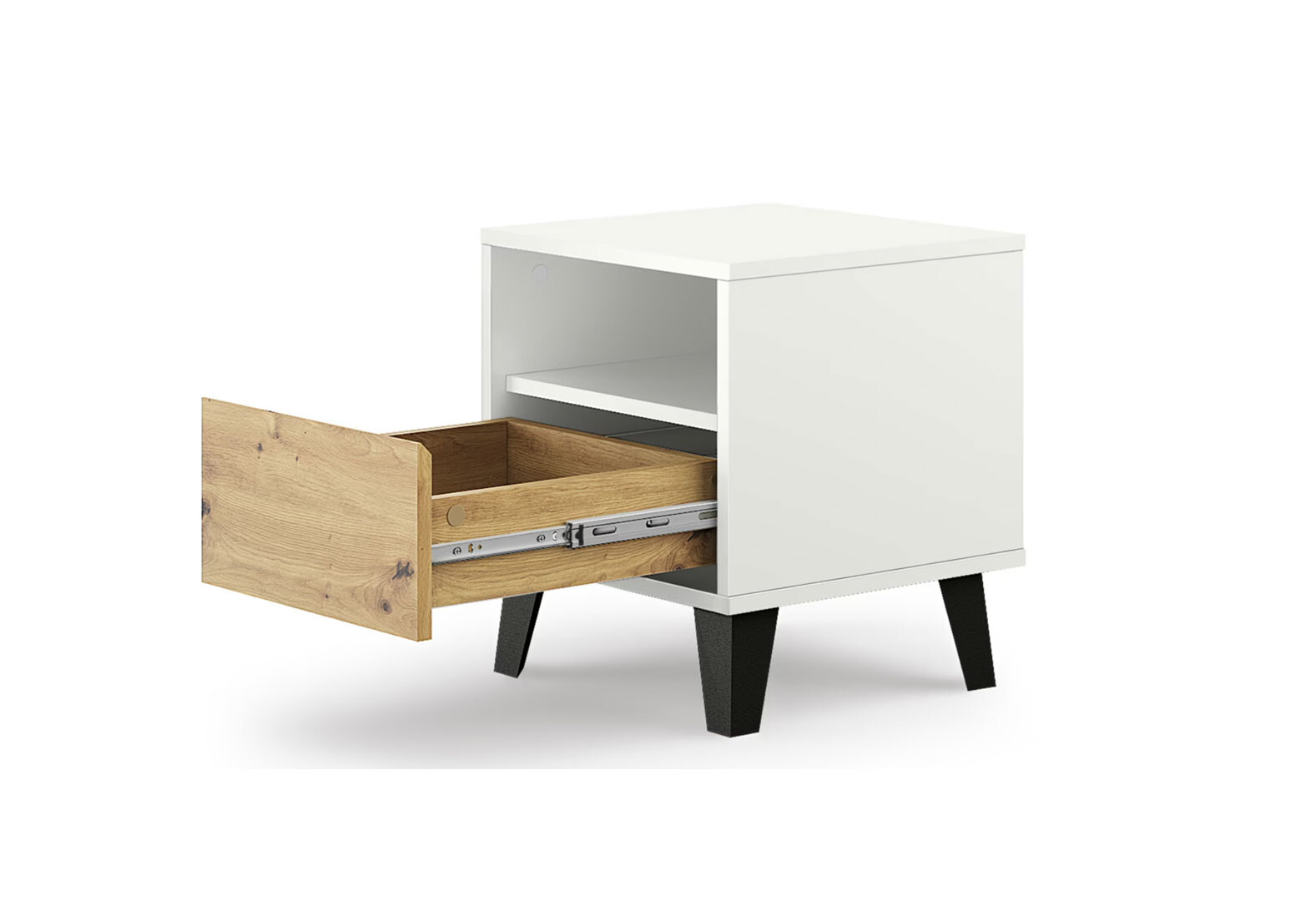 Fotografie 4 - Noční stolek Borg 1s bílý / dub artisan
