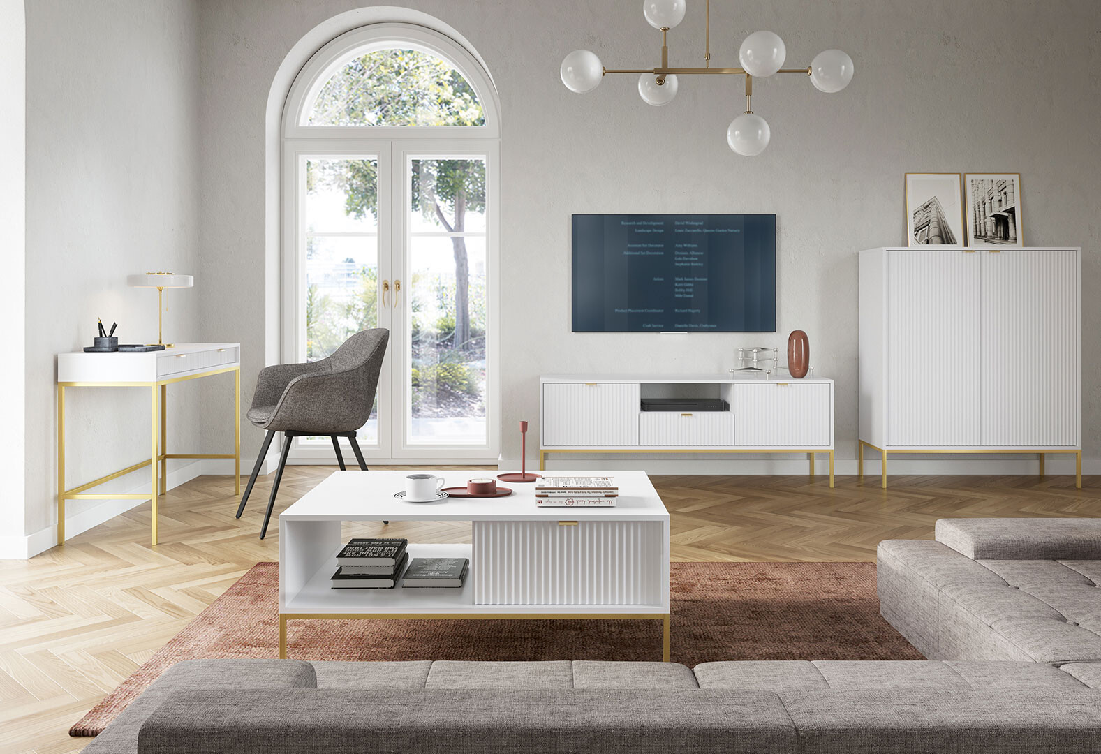 Obývací sestava II bílá Nova Zlaté nohy / zlatý úchytky