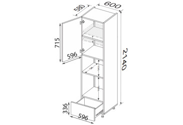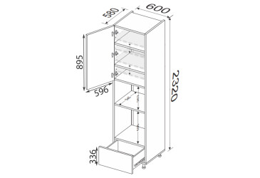 - Velikost. S rozměry 40 cm x 214 cm x 58 cm poskytuje ideální prostor pro uložení potravin, nádobí a dalších kuchyňských potřeb, čímž zajišťuje efektivní využití místa.