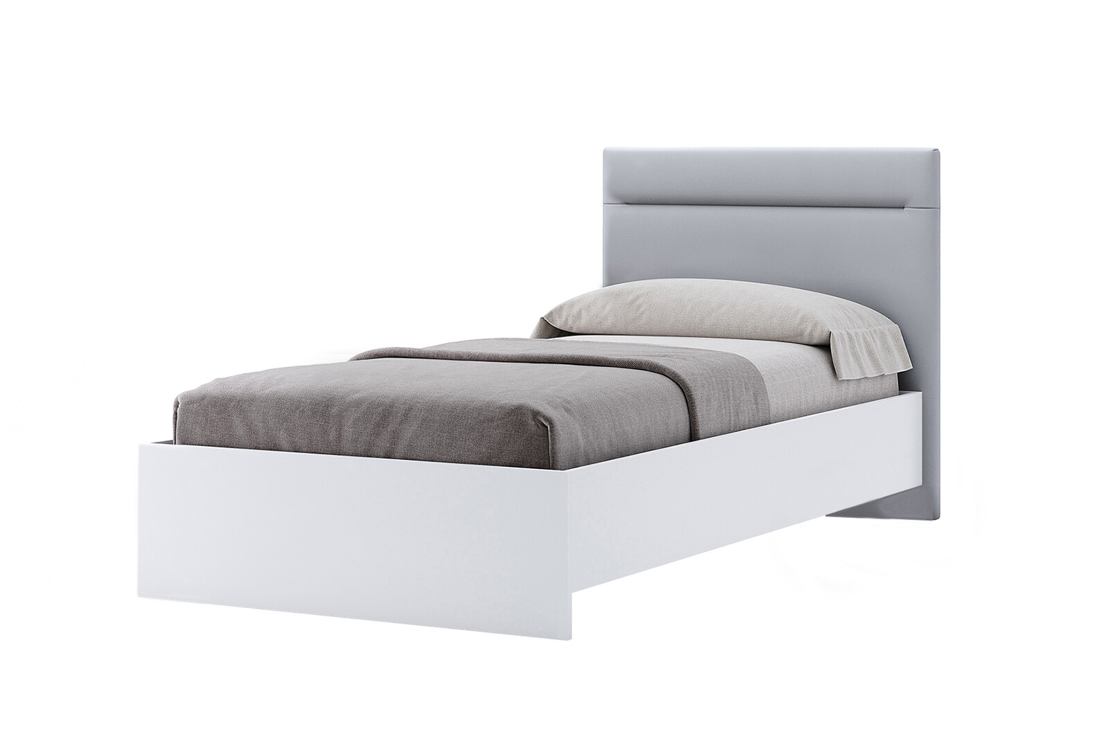 Postel 0,9x2,0 s čalouněným měkkým čelem a rámem, bílý lesk Family