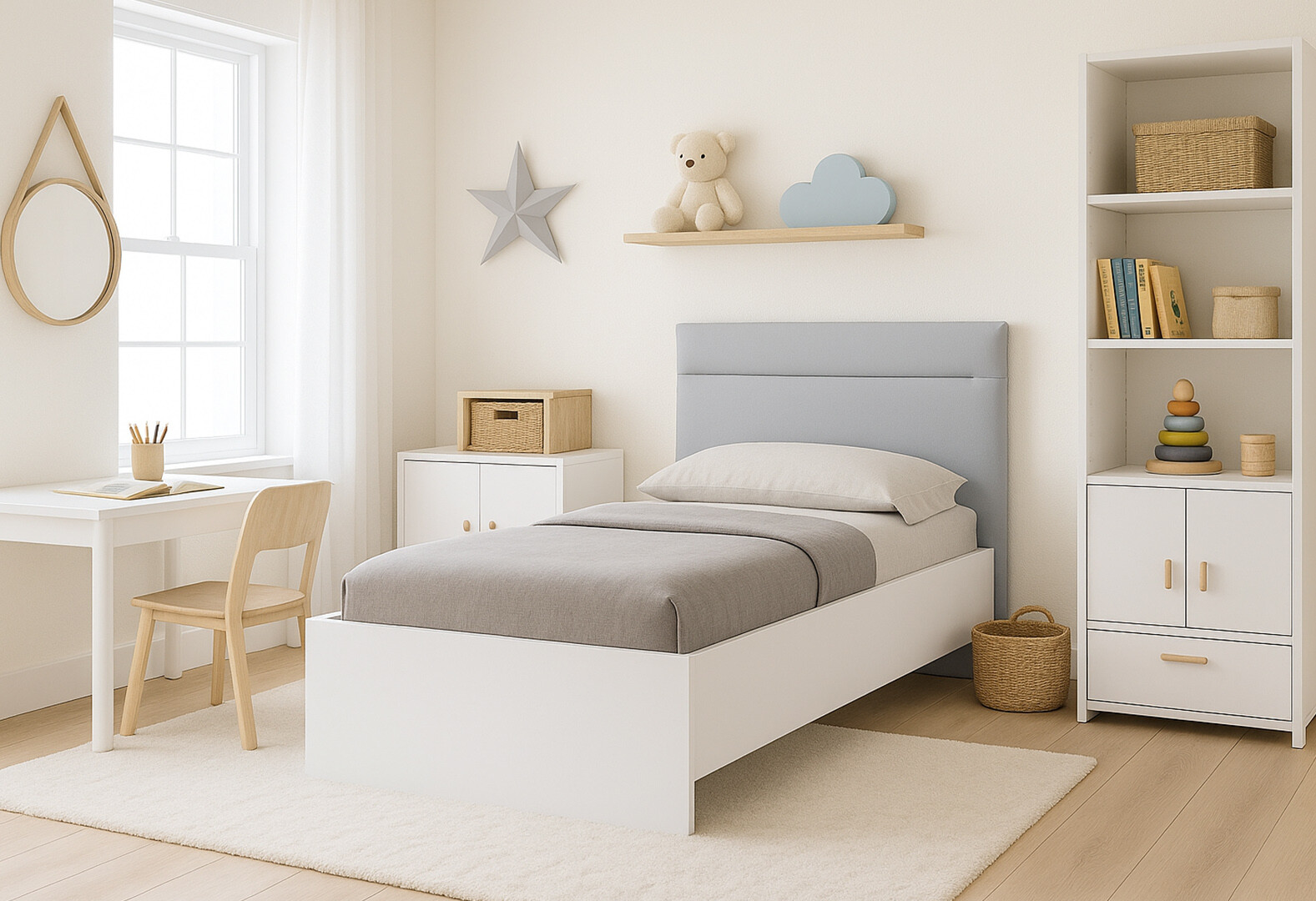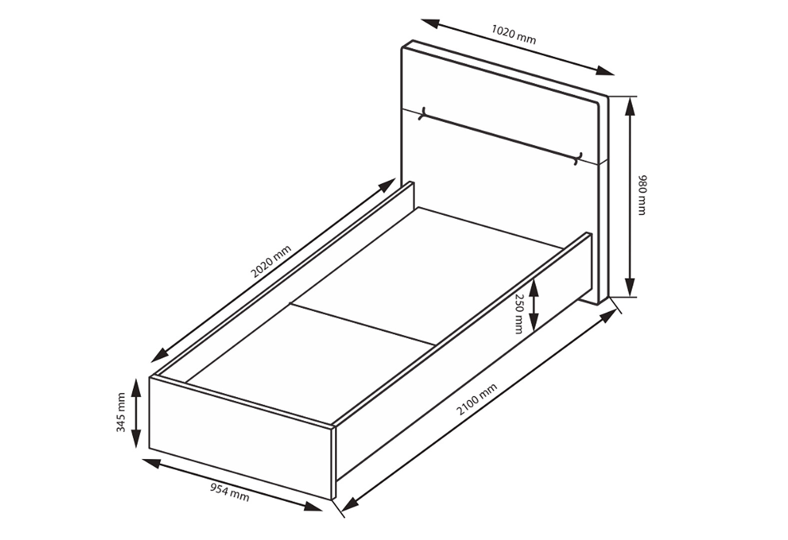 - Postel 0,9x2,0 s čalouněným měkkým čelem a rámem, bílý lesk Family
