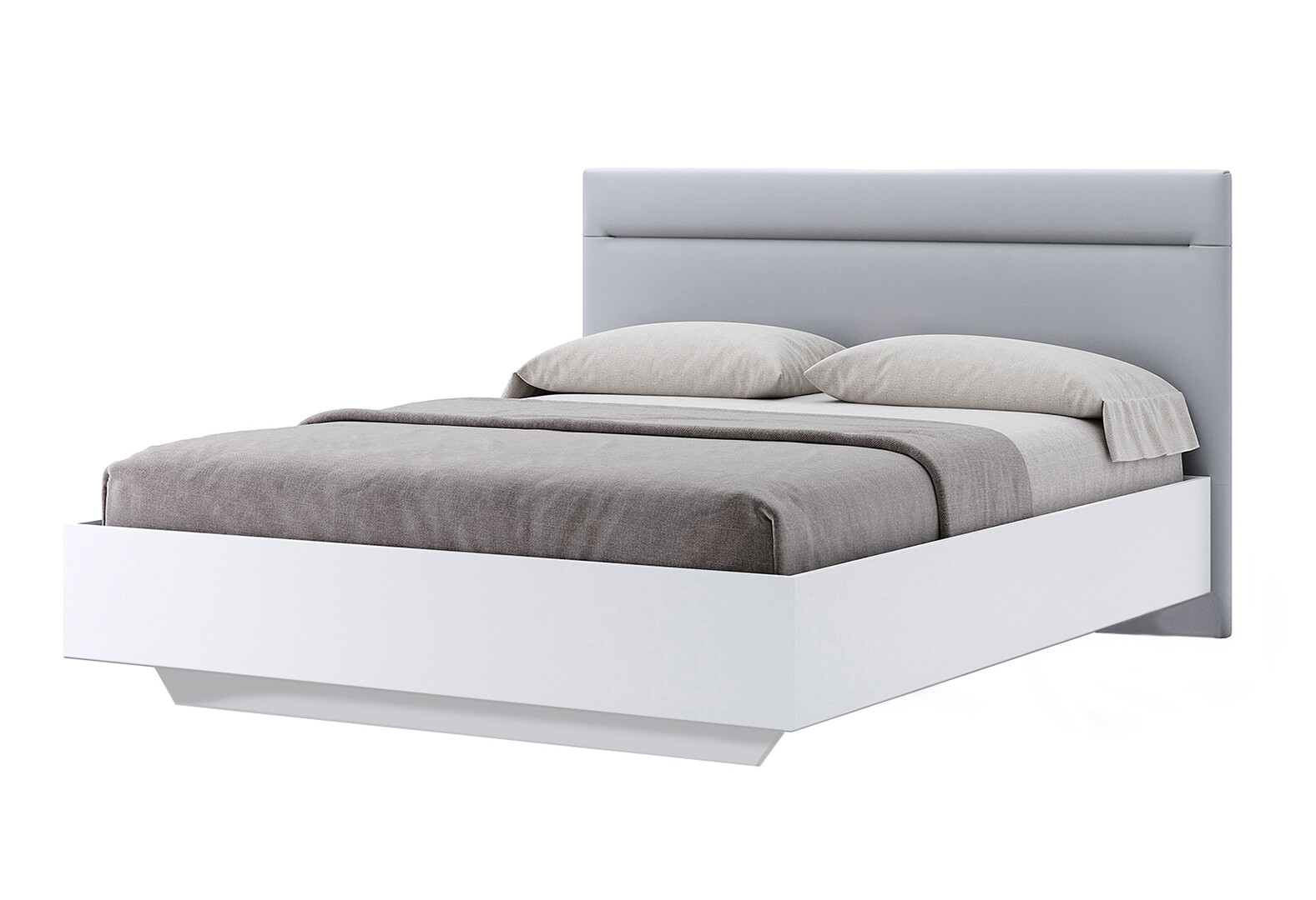 Postel 1,4x2,0 s čalouněným měkkým čelem, bílý lesk Family