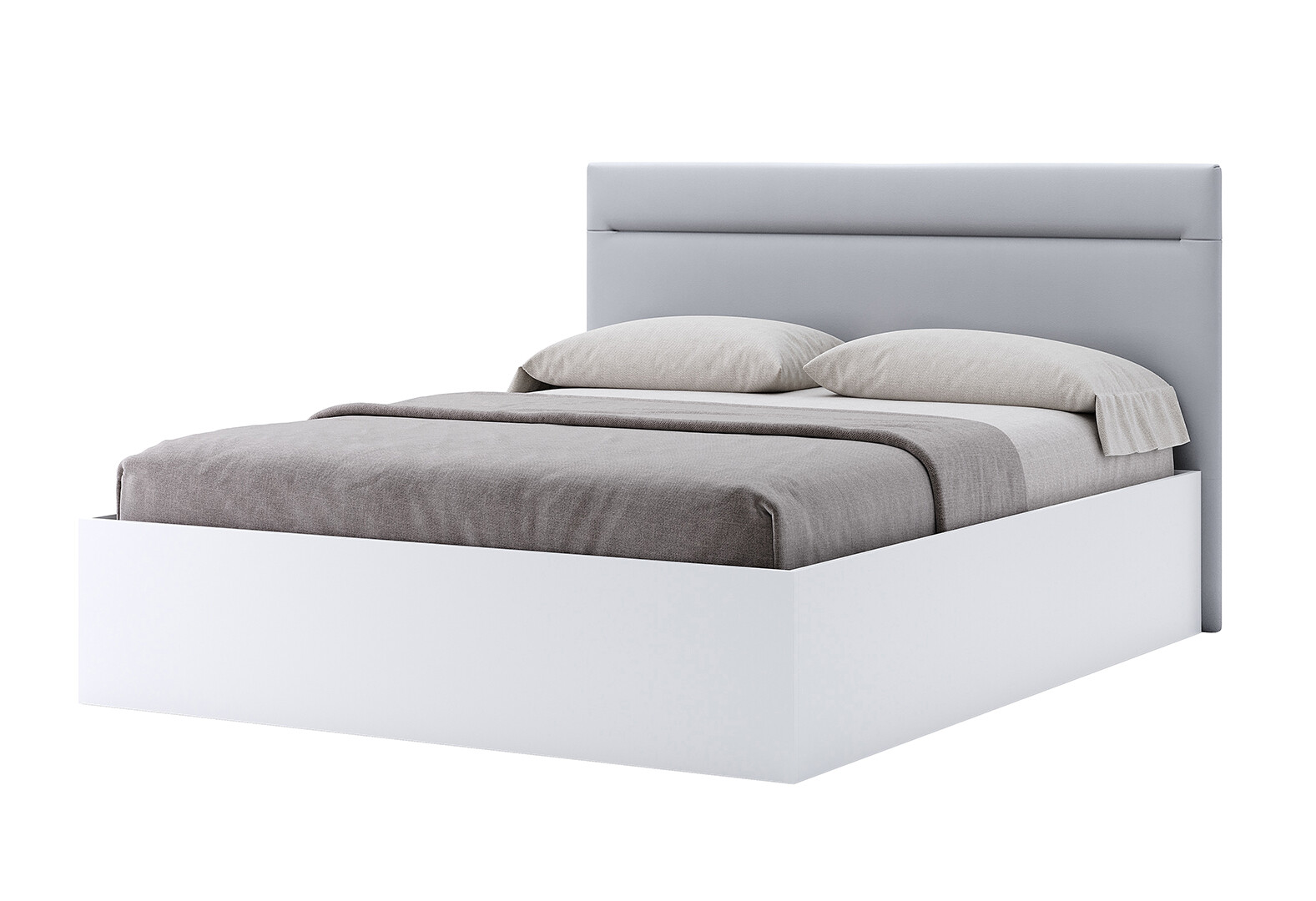 Postel 1,6x2,0 s čalouněným měkkým čelem a výklopným roštem, s rámem bílý lesk Family